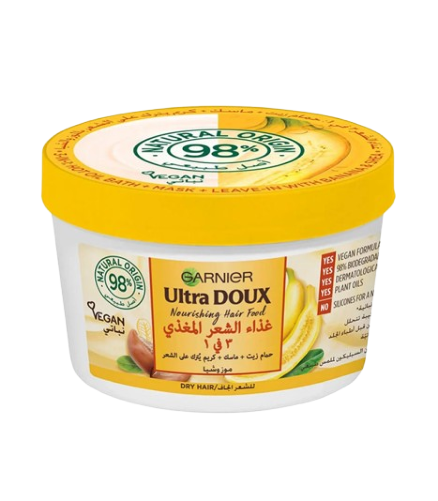 غذاء الشعر المغذي 3 في 1 بالموز والشيا للشعر الجاف الترا دو من غارنييه 390مل