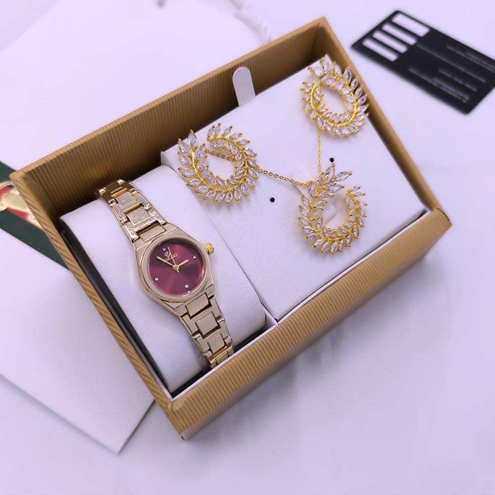 ساعة نسائي طقم اكسسوار سلسال مع حلق استيل فصوص جوده عالية تصميم انيق