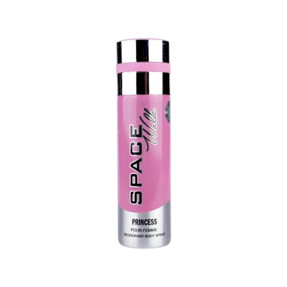 تمتع بحماية فعالة ودائمة مع سبيس والك بخاخ مزيل عرق برينسيس، الذي يوفر لك حماية ضد التعرق والروائح الكريهة طوال اليوم. بتركيبته المتطورة، يعزز من انتعاشك برائحة أنثوية وجذابة، مع ترك البشرة جافة ومريحة.